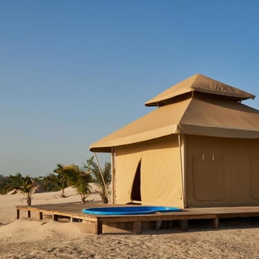Offrez-vous un séjour inoubliable dans le luxe d'une grande tente mauritanienne, avec un confort total et une piscine privée en terrasse. La Suite Pataya est une déclaration d'amour au désert sénégalais : les ornements et les tissus aux inspirations sahariennes créent un cocon somptueux, tandis que la terrasse avec piscine privée vous offre un panorama exclusif sur les dunes. C'est l'hébergement de prédilection pour une lune de miel, un anniversaire ou simplement pour ceux qui souhaitent vivre le désert dans une bulle de plénitude absolue. Demi-pension (Petit déjeuner & Dîner) incluse.
